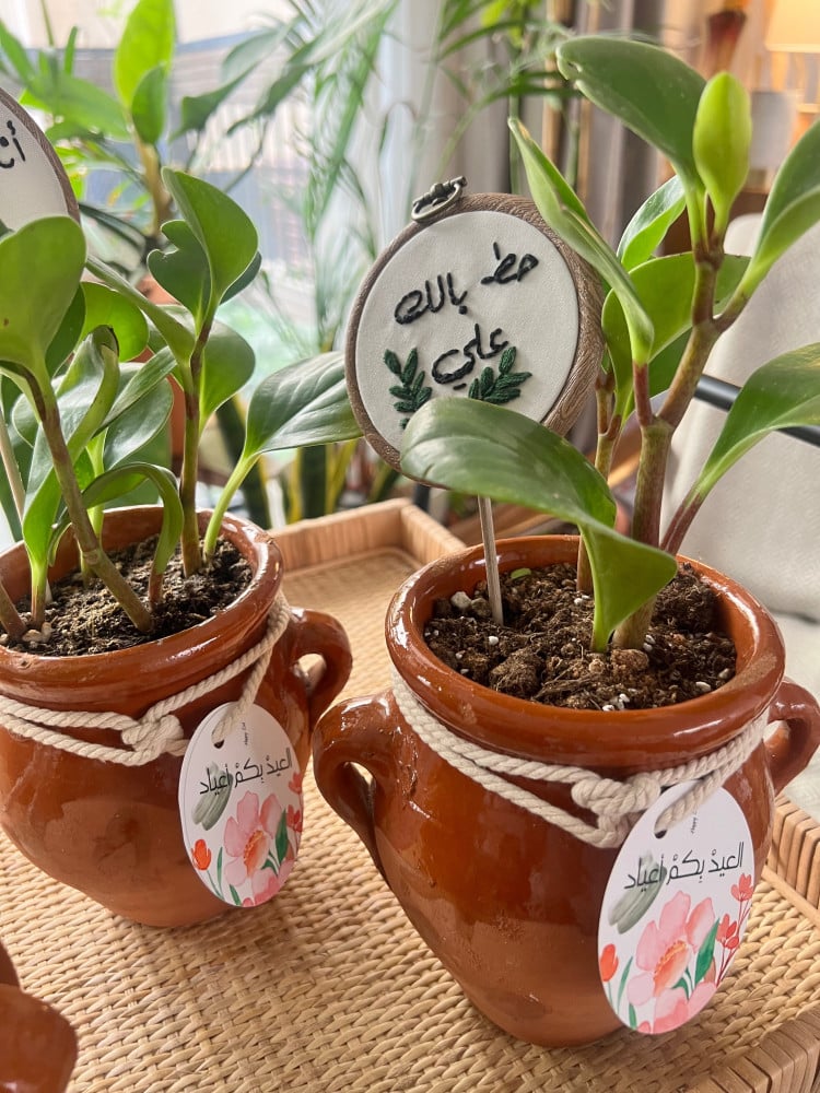 وتغريسة مطرزة يدوياً بعبارات لطيفة